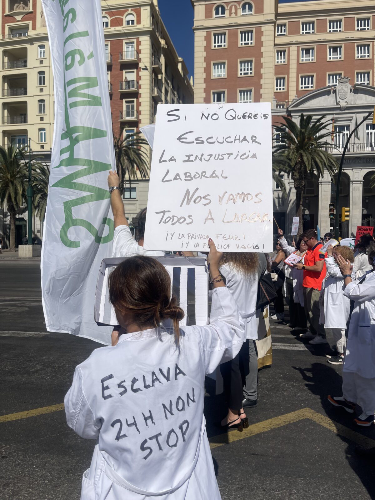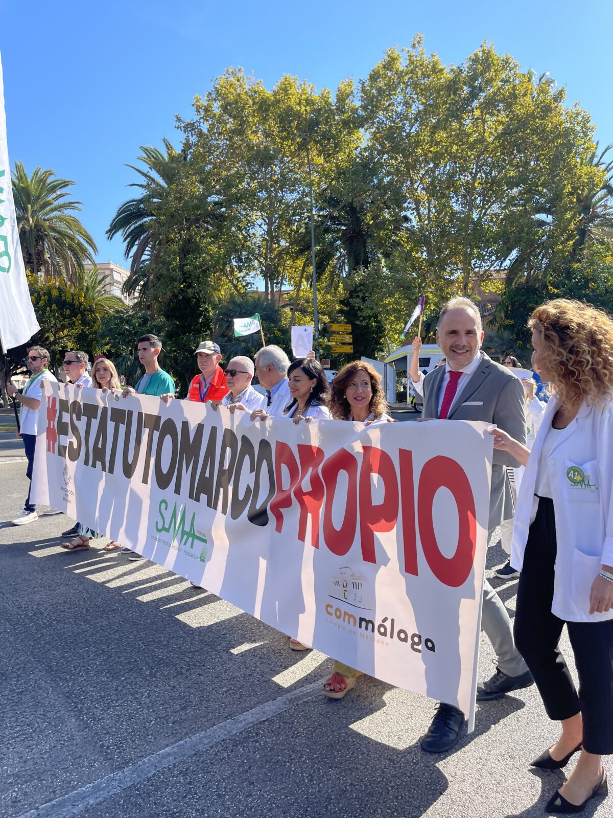 El Colegio De Médicos De Málaga apoyó activamente esta jornada de protesta; en la cabecera de la manifestación estuvo su presidente, Dr. Pedro J. Navarro, junto con miembros de la Junta Directiva del Colegio. El máximo representante de los médicos y médicas de Málaga considera que la profesión debería tener un Estatuto propio que incluya “medidas que retengan el talento, protejan frente a las agresiones, vayan encaminadas a la conciliación, contemplen unas jornadas de guardias que no pongan en riesgo la salud de los médicos y que esas horas cuenten como tiempo cotizado. En definitiva, un marco propio que reconozca la responsabilidad de los facultativos y que nos permita trabajar con dignidad”.