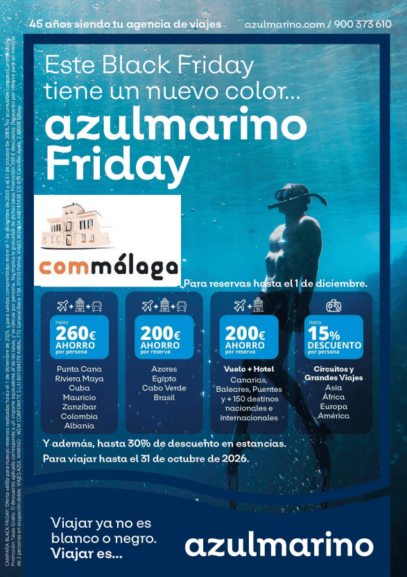Viaja a Punta Cana, Riviera Maya, Cuba y más con la oferta Black Friday exclusiva para el Commálaga de Viajes Azul Marino, hasta 260€ de descuento por persona.